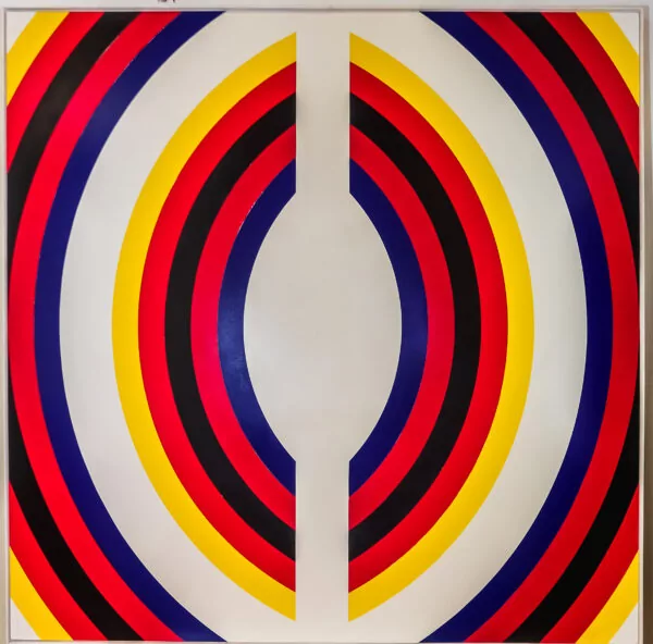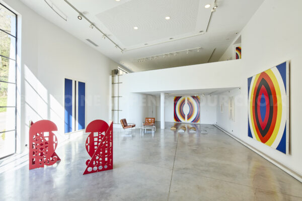 De lui, l’exposition présente sa série fondatrice, les peintures Pioneers, caractérisée par des plans de couleurs, traversées par des lignes droites parfaites, s’étirant d’un bout à l’autre de la toile. Avec la même rigueur géométrique, ces éléments picturaux se transforment en arcs colorés dans ses séries Flame et Transmitting Waves, à la recherche d’une vibration plus dynamique.