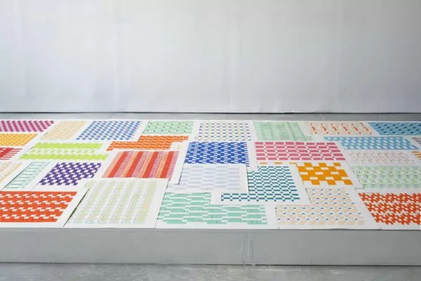 Michelle Grabner is an artist, curator, writer and professor in painting and drawing at the School of the Art Institute in Chicago. Grabner began making paper weavings in the 1990s when one day her son brought a similar specimen of his own making home from school. The hand-made, craft-based and minimal series directly engage the Bauhaus theories of weaving as well as the educational theories of Friedrich Fröbel, the German educational theorist who pioneered the concept of the Kindergarten.