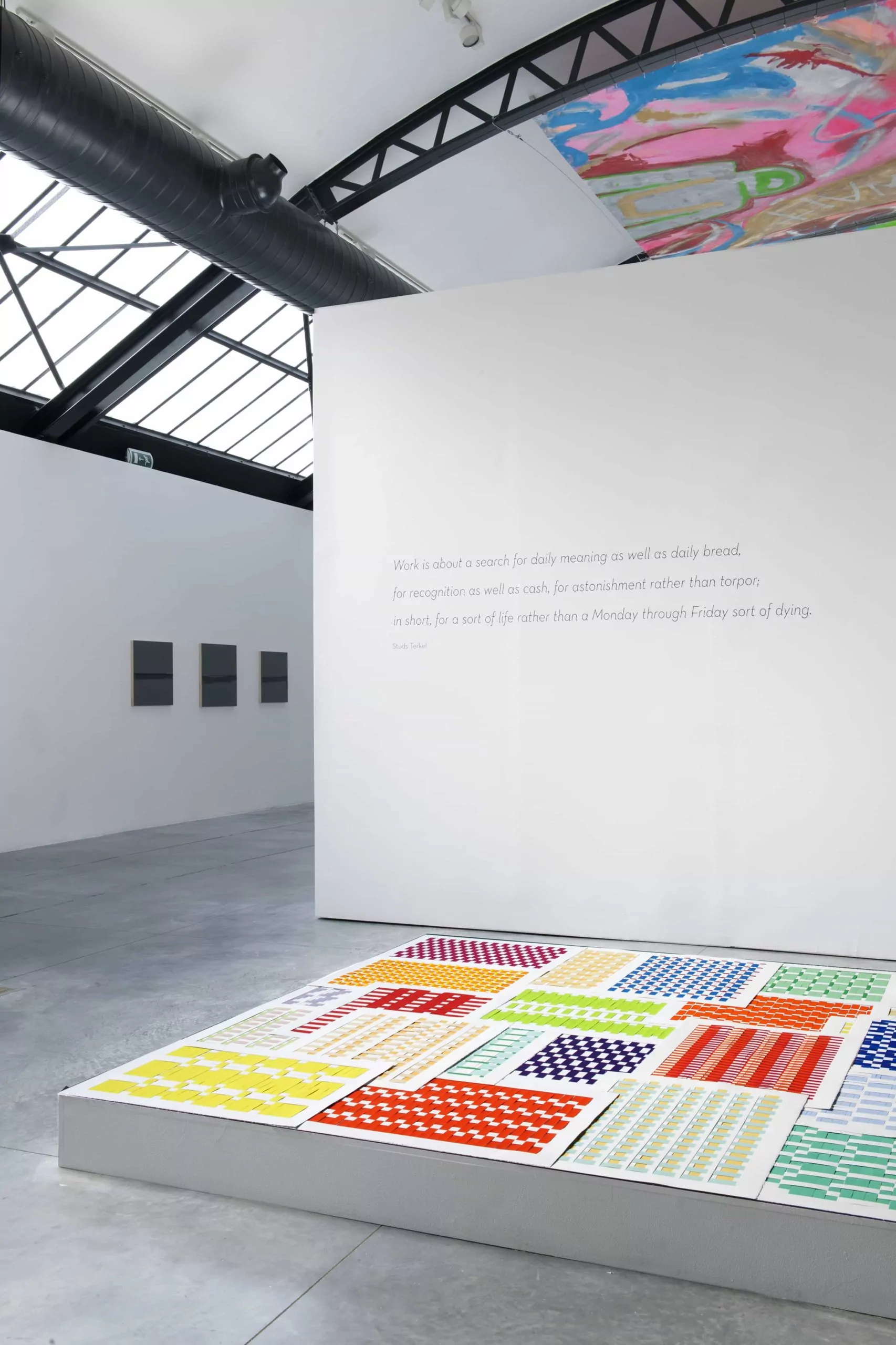 The Works aborde la thématique du travail de plusieurs façons propres à Chicago : Marissa Lee Benedict & David Rueter, Theaster Gates et Dan Peterman élargissent leurs pratiques multidisciplinaires à la recherche et au militantisme, en se penchant principalement sur la production artistique en tant que véhicule de réflexion écologique et sociale. D’autres artistes présents dans l’exposition explorent les liens inextricables entre la création artistique et le quotidien, comme les tissages de papier de Michelle Grabner ou le texte mural ad-hoc de Tony Lewis, créés spécialement pour l’exposition à partir d’extraits du Petit livre de la vie : manuel d’instructions. Lewis présentera également un dessin grand format au sol, créé partir d’un terrain de basket situé proche du CAB liant encore d’avantage son travail artistique à la vie quotidienne.