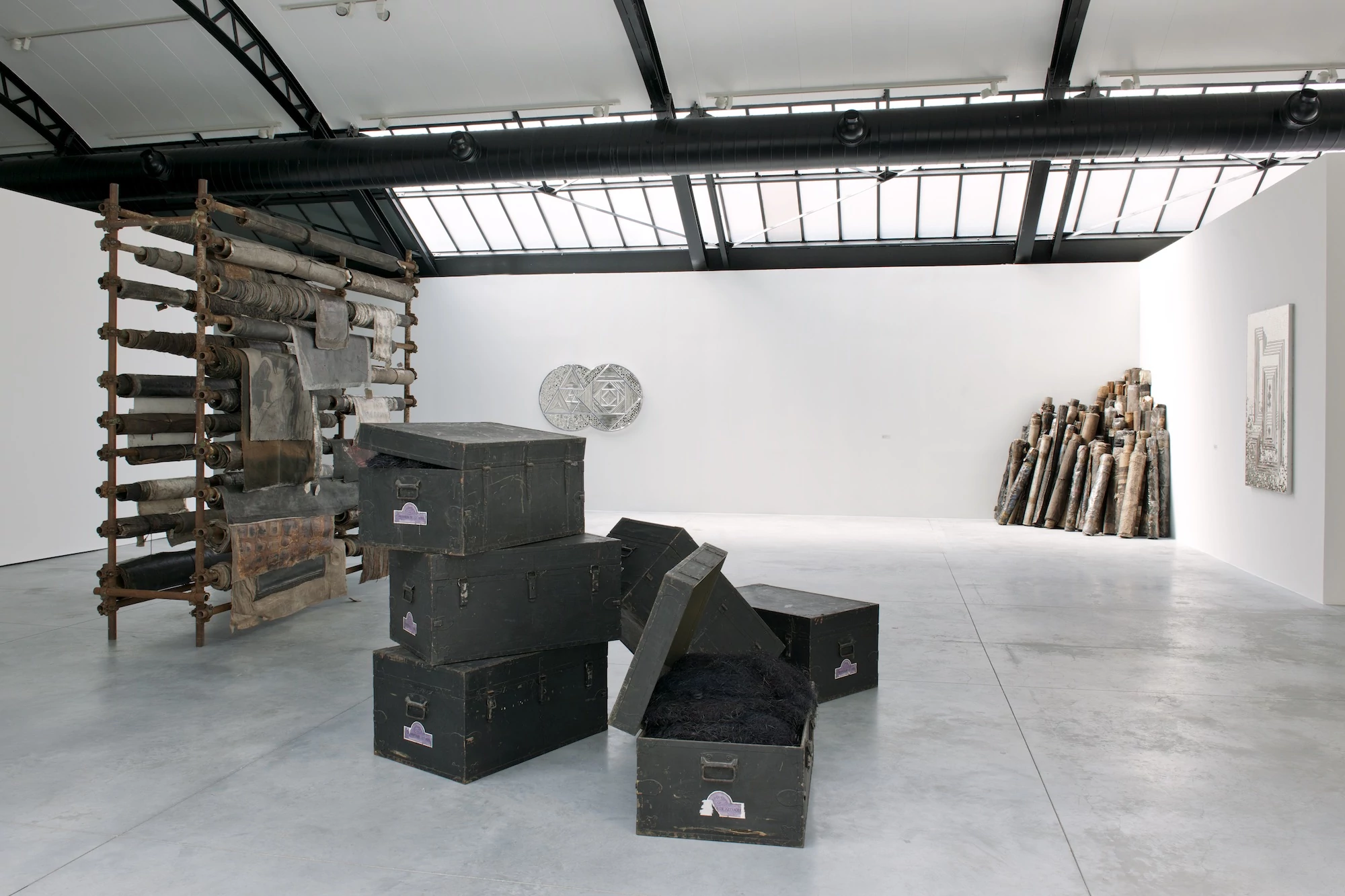These two types of black lay a veil of dust on the Products of and identify if not stigmatize the work. In the late 80s, the artist retrained her previous productions (drawings, paintings, found objects) in a single material / memory she started naming Products of Chohreh Feyzdjou, as from 1989 onwards. The Products form a coherent group and are organized into sets of identifiable letters and digits: a letter followed by a serial number and the year.