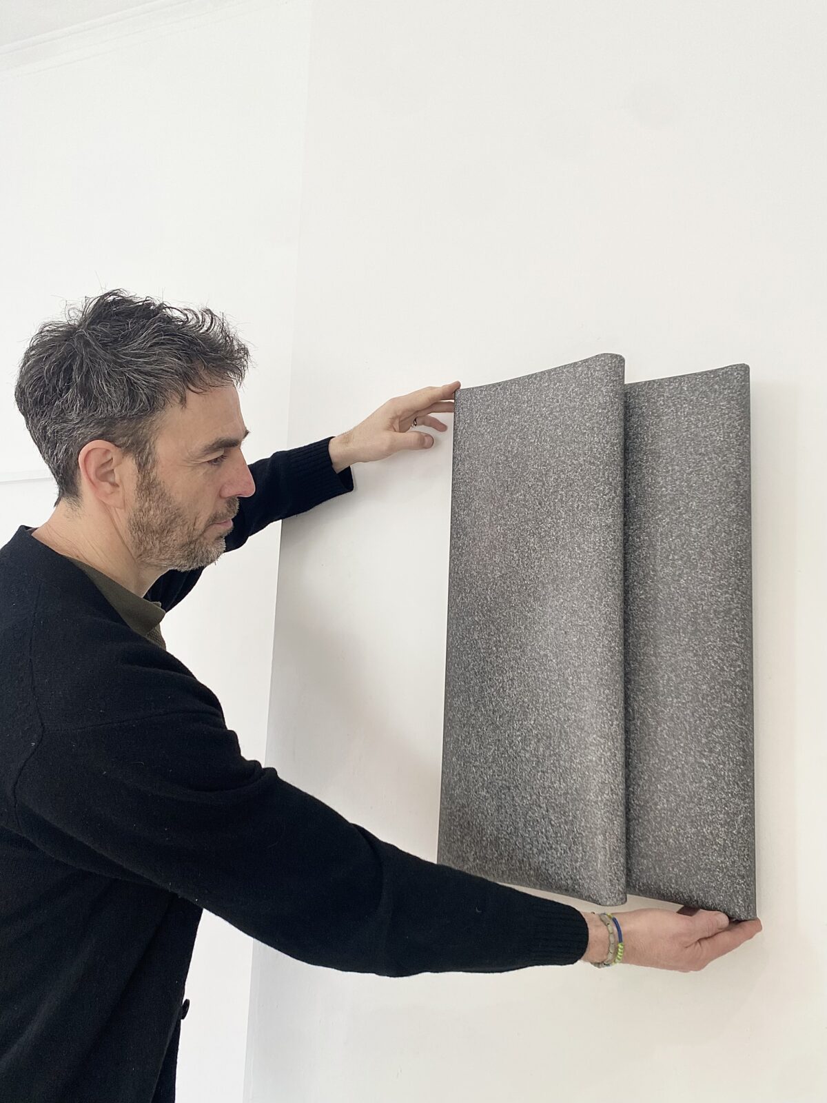 By altering perceptions of materiality and space, his works invite viewers to reconsider their surroundings, shifting their understanding of depth, weight, and structure through the act of looking and moving within the exhibition space.